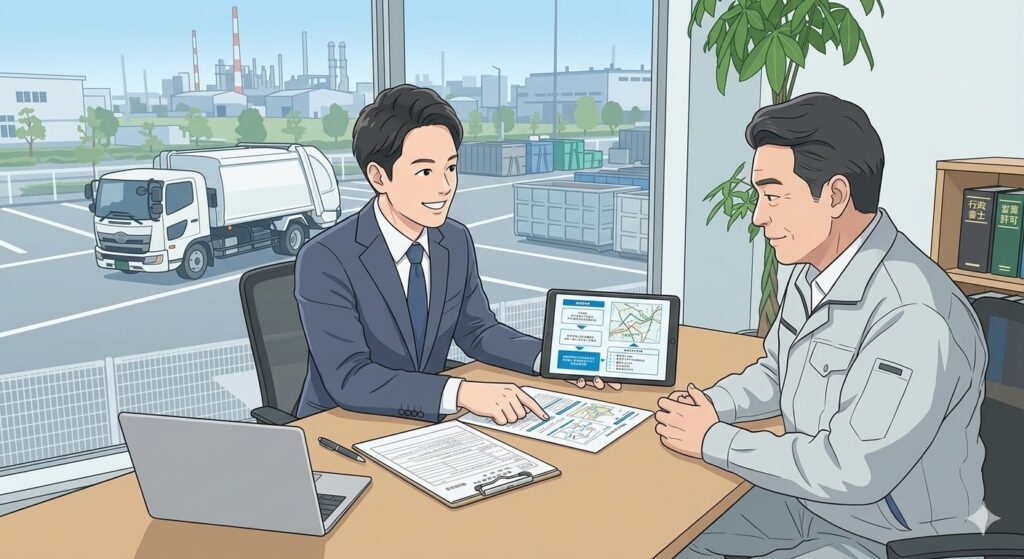 建設業・運送業・設備業・製造業などで産業廃棄物を運搬するには、自治体ごとの「産業廃棄物収集運搬業」の許可が必要です。